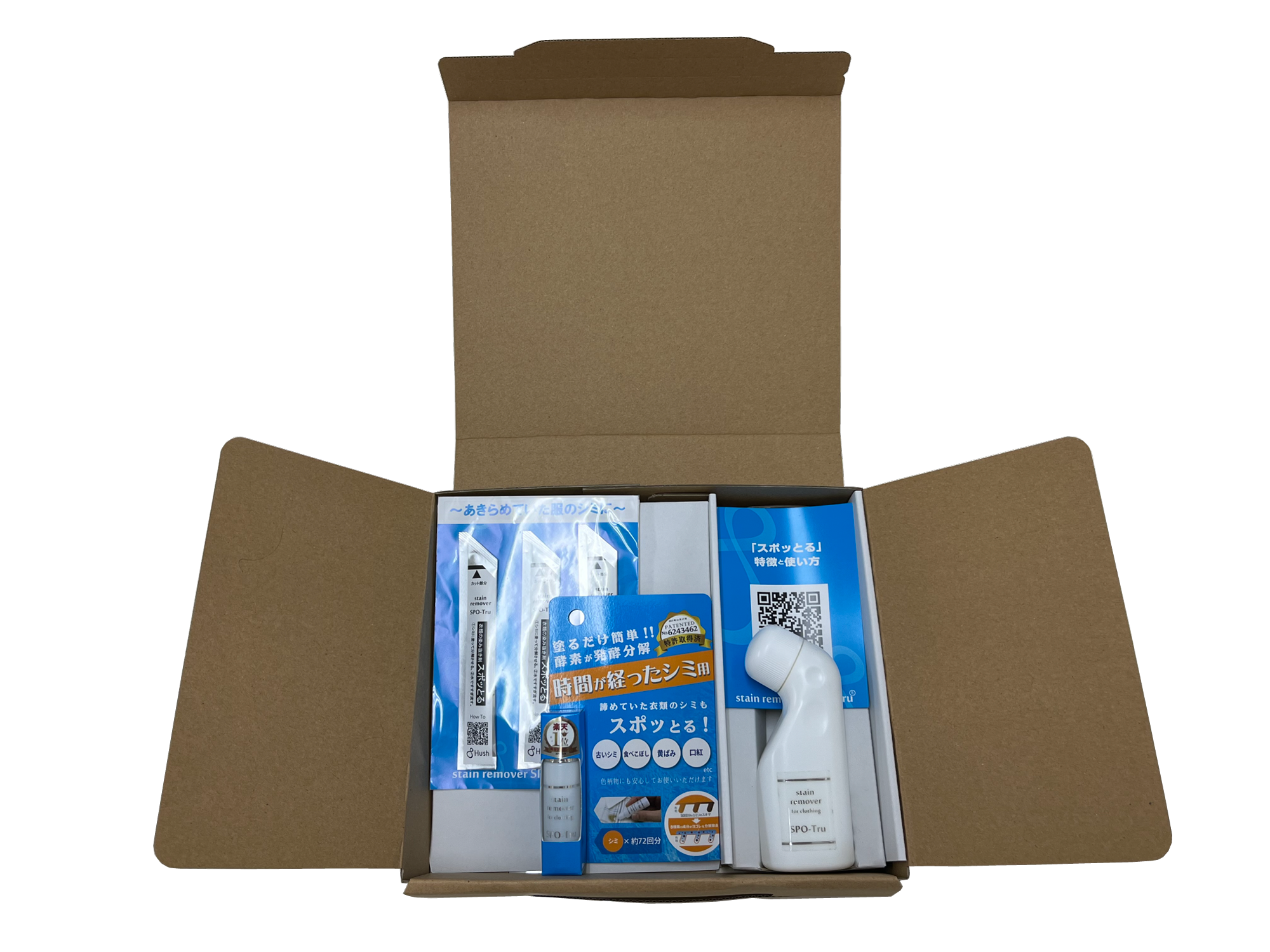 しみ抜き剤「スポッとる」ギフトセット 10ml・50mlスポンジヘッド・3包トライアルキット 化粧箱入り